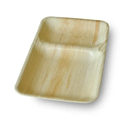 These disposable Areca plates are sustainably sourced and crafted in India from recycled areca palm leaves. No trees are ever cut down. They are also durable, large, sturdy and heavy duty.