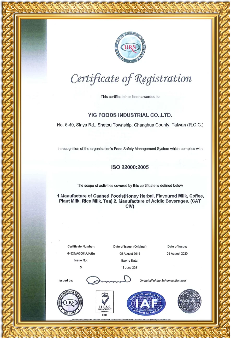 Jyichin Food Co., Ltd. was founded in 1991. It is our basic requirement to manage with heart and emotion, insist on quality, and to check for consumers. The current product categories include milk tea, coffee, milk, juice, herbal tea, old tea, sorghum liquor Dozens of kinds of food, snack foods, enzymes, etc., due to the support of consumers, prompting us to expand rapidly. The channel covers Taiwan, Penghu, Jin, Malaysia, mainland, and Hong Kong and other countries. We will uphold our consistent belief and take steps Products are sold all over the world.