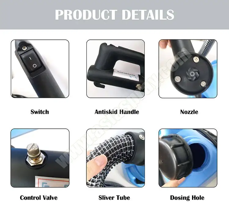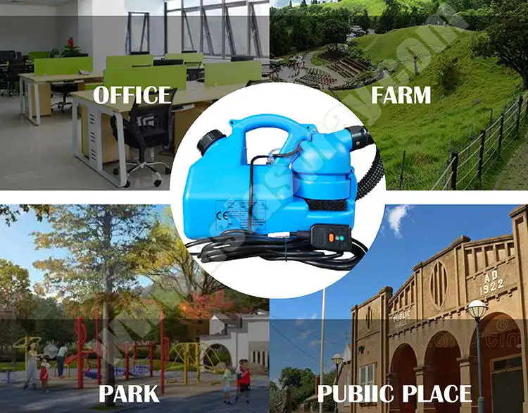 | This product is used for sanitation and epidemic prevention, disinfection, insecticide, sterilization, humidification, etc. Widely used in airports, animal farms, hotels, restaurants, aquatic products markets, buses, communities, hospitals, hotels, hotels, shopping malls, restaurants, out-of-home parks, schools, theaters, amusement parks, cars, trains, ferry, airplanes, Workshops, greenhouses, etc. |