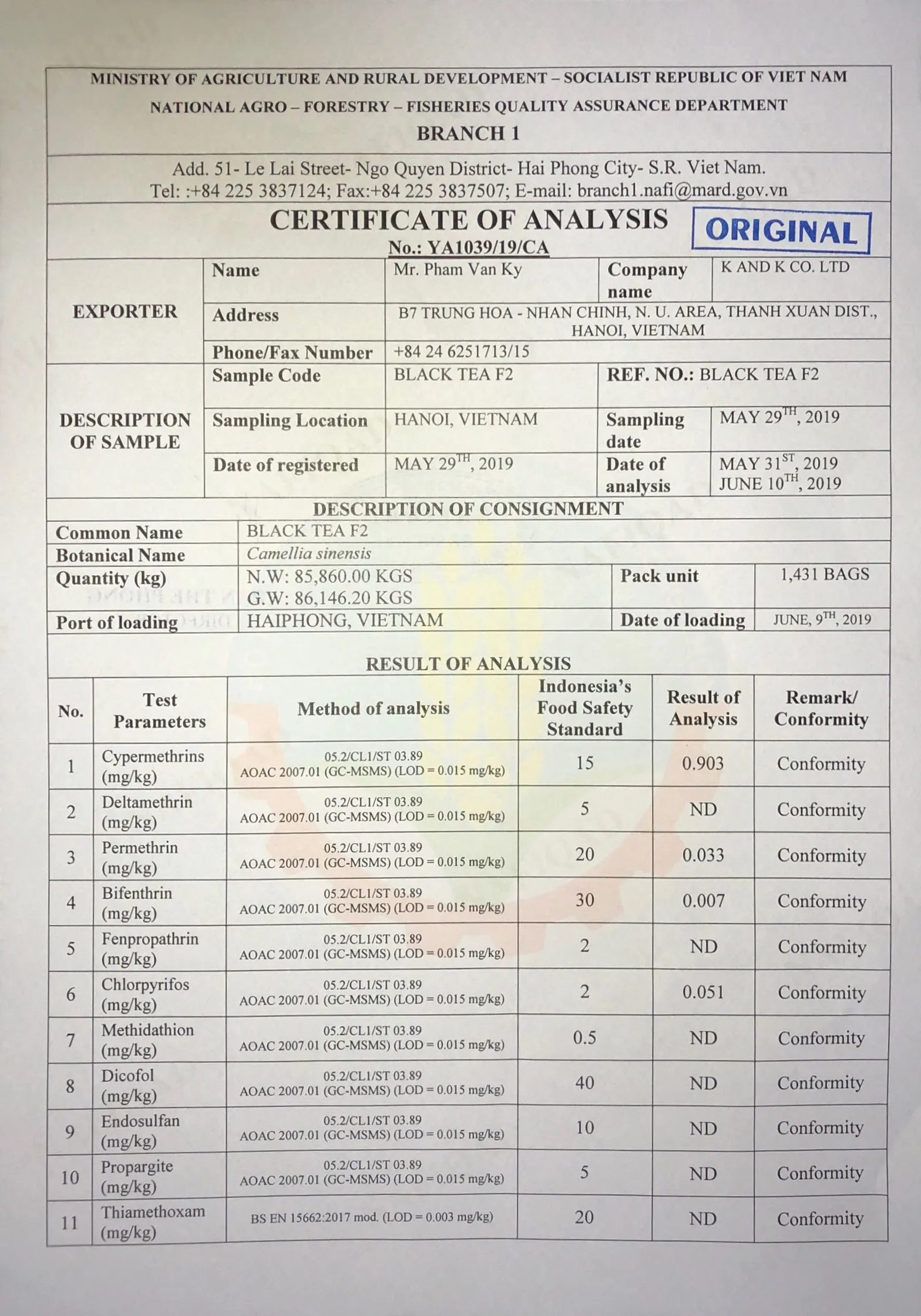 Year Established: | 1999 | Annual export: | 7000 - 8000 tons |