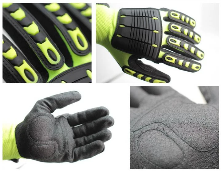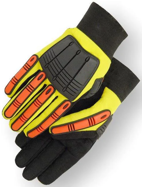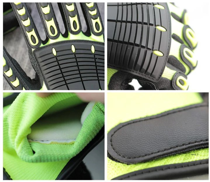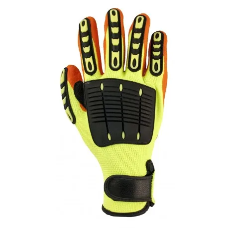 * Extra protection between thumb and forefinger and padding to this typical wear point * Fit snugly into palm and all fingers, wrap tightly around wrist with adjustable wrist Velcro, not stiff, not bulky, allow movement and dexterity. * Hi-Viz lime green silicone textured palm and fingers with reflective stripping on back of hand,,open cuff for easy donning