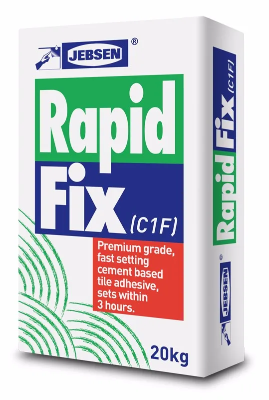 JEBSEN Rapid Fix suitable for fixing ceramic wall & floor tiles, Vitrified Homogeneous Tile, Porcelain, Marbles, Granite, Terrazzo, Decorative stone and etc. Suitable to use on wall and floor dry or wet, interior or exterior areas. Special fast-setting formulation for time-critical tile installation and repair. Can set within 2 - 4 hours, and have good flexibility.