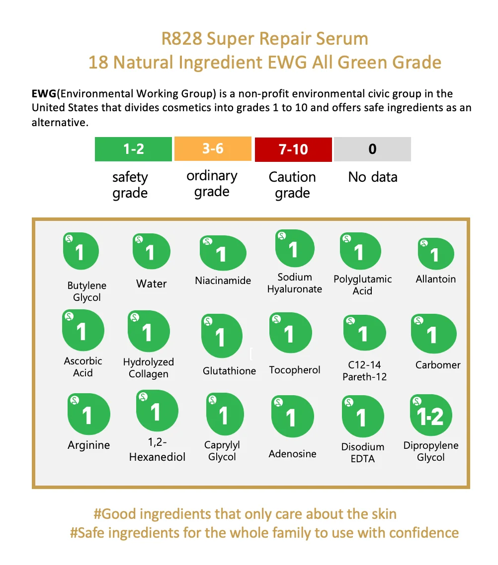 3. The ingredients are EWG green ranked which is low irritation , can be used for all skin types, especially the sensitive skin.