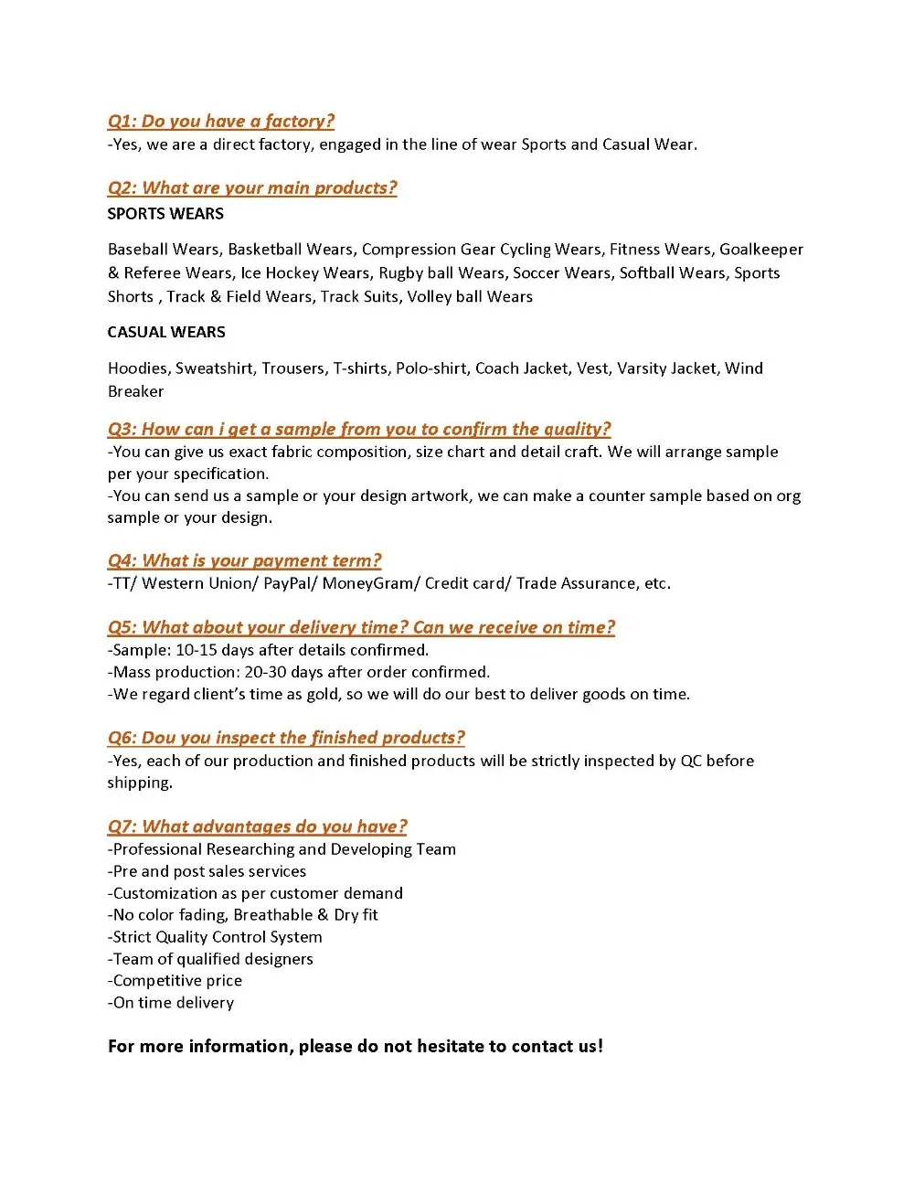 Casual and Sports Wear