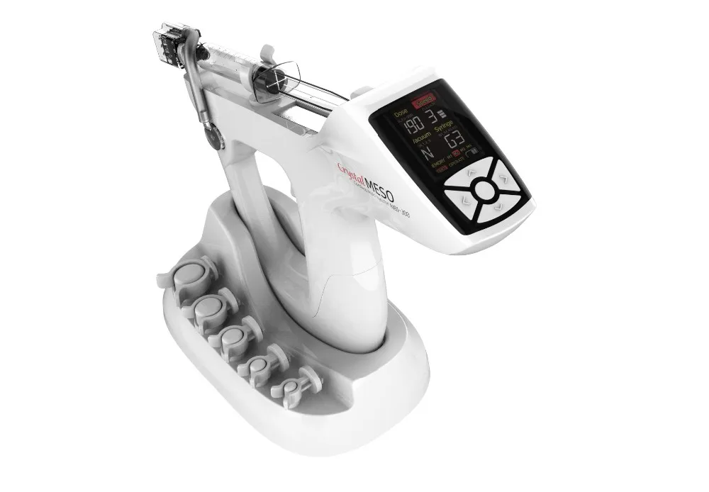 1.5-inch display for setting total shot, volume of solution, vacuum level, injection speed, and syringe size. Memorization function for frequently used settings.