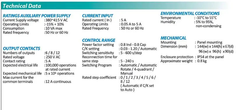 Автоматический контроллер коэффициента мощности 12 шагов 380 415VAC новый стиль 2021 Сделано в Турции