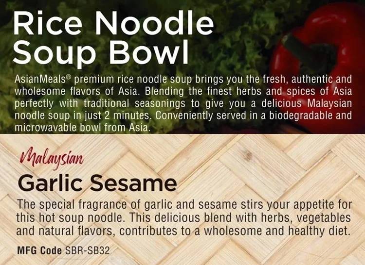 PRODUCT | AsianMeals Rice Noodle Soup Bowl Halal Malaysian Garlic Sesame | ||||