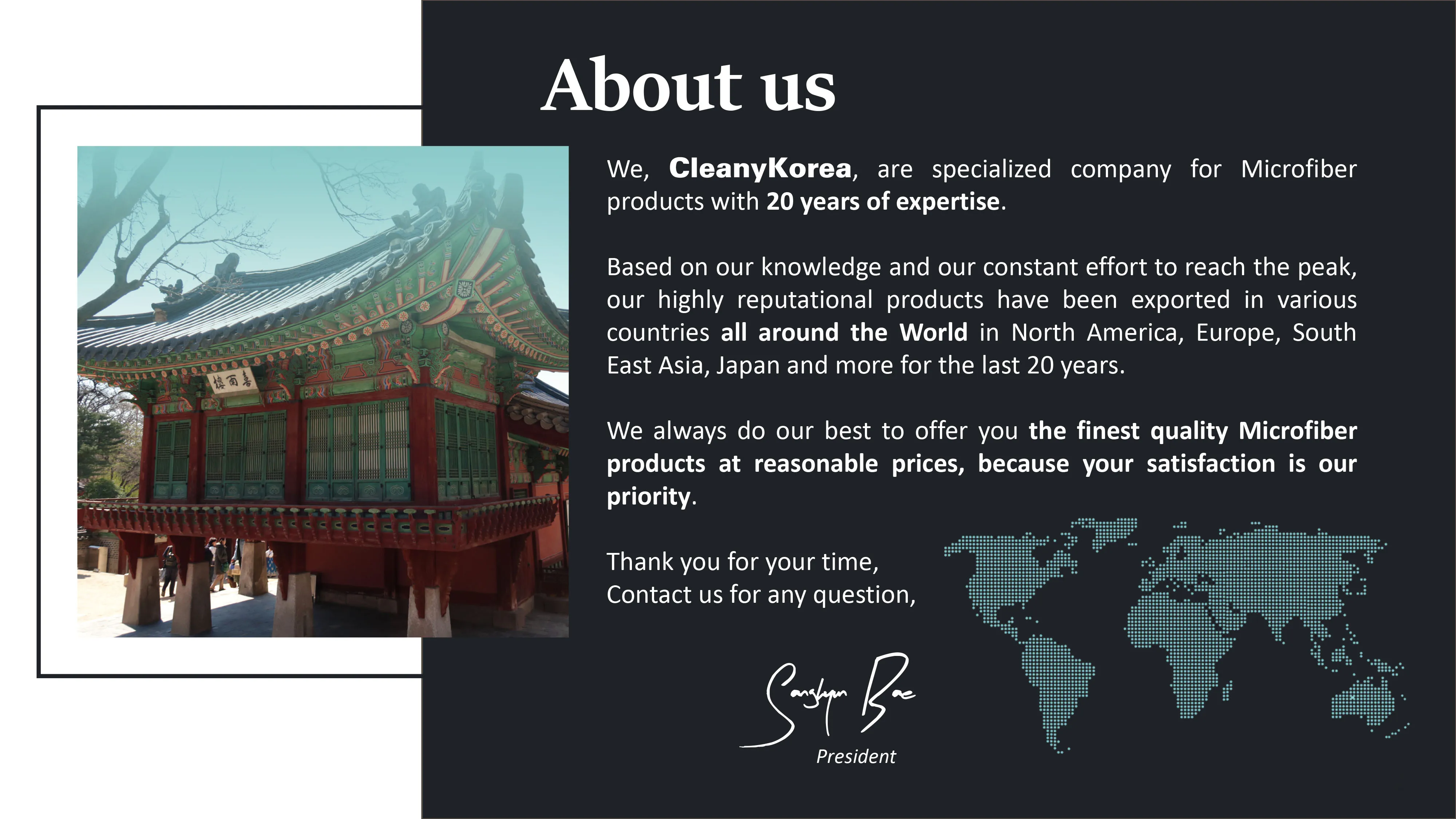 We, cleanyKorea, takes the time with you to find the best quality products to meet your needs We are offering after sales service for any defected items found after shipping We are authorized supplier to take an adavantage of KOR-EU Free Trading Agreement