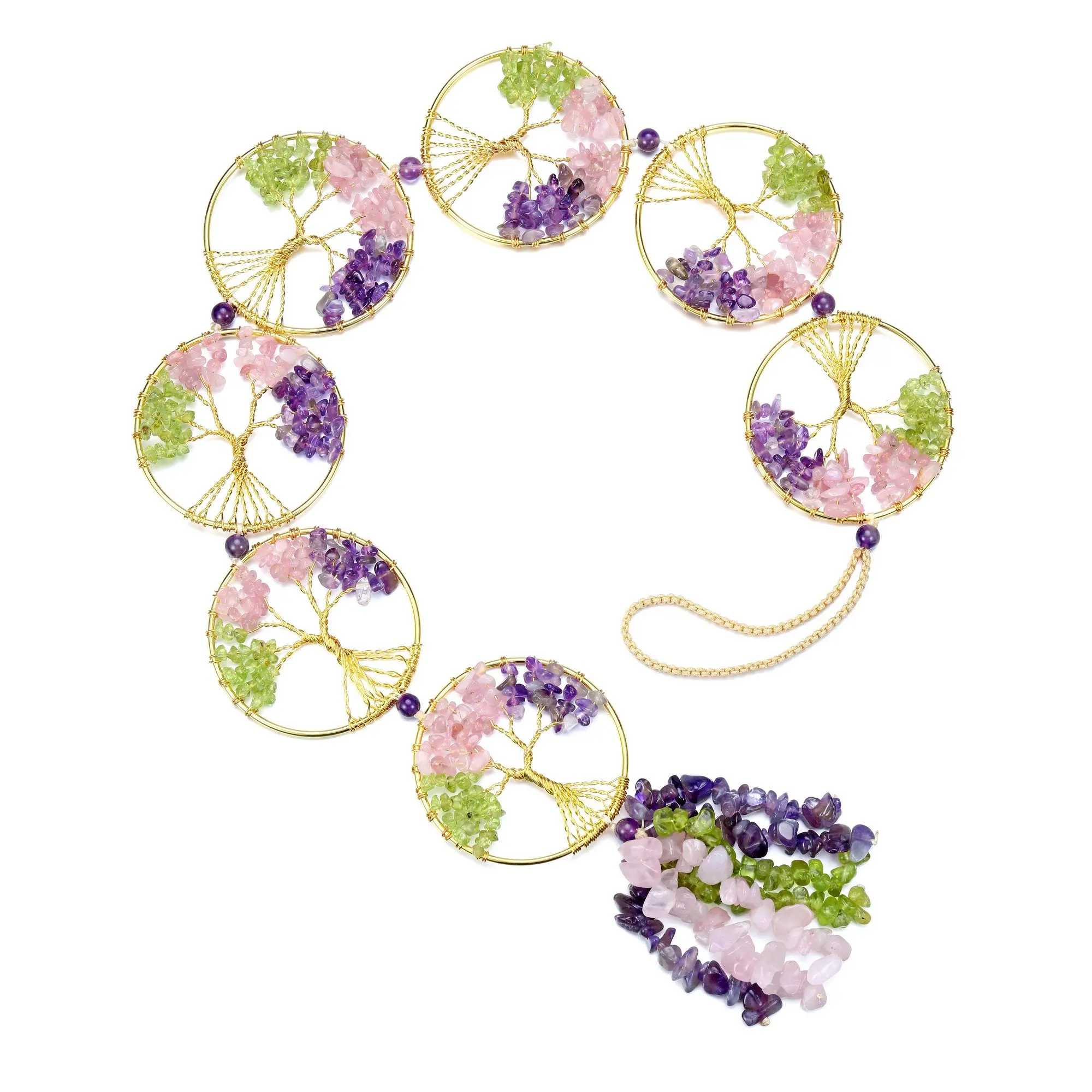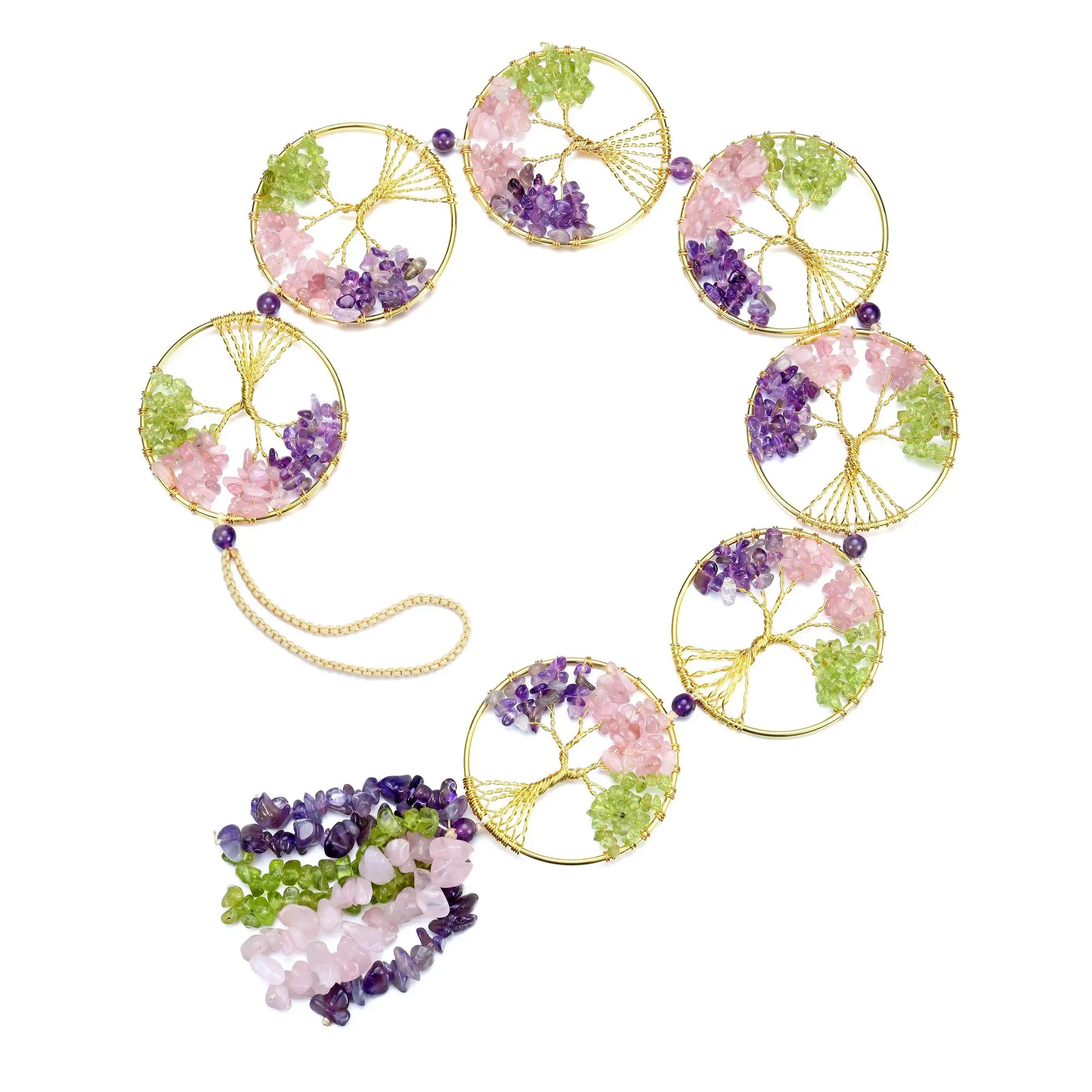 *Material: 7 Chakra Healing Crystal hanging ornament, handmade of colorful tumbled stones pendents and wire wrapped tree of life