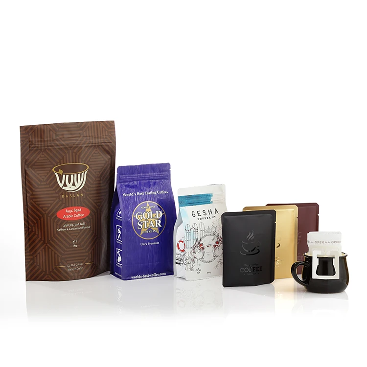 CCustom printed side gusset stand up pouch ziplock with valve zipper tin tie flat block box bottom kraft drip coffee packaging bag