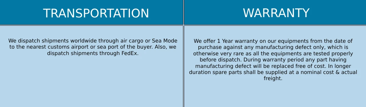 We are exporting our equipment worldwide directly from India for the last 18 years with proven track record.