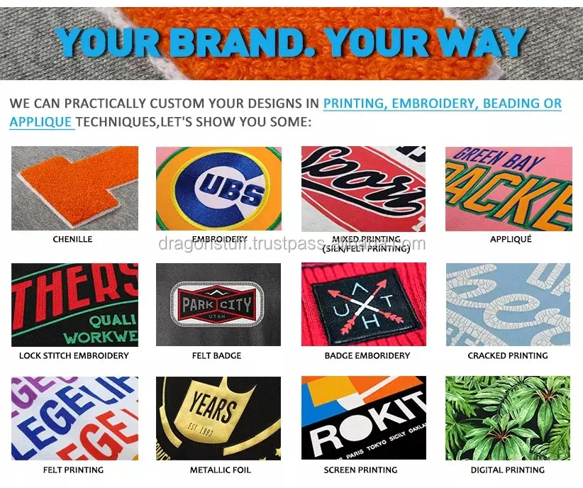 DRAGON STUFF ENTERPRISES integrates the design development, manufacturer and supplies of all kind of jackets, hoodies, sweatshirt, t-shirts etc...Our product range mainly covers all kinds of Sports series like american football uniform, baseball uniform, MMA wears, team uniform,football uniform etc...and Fashion series with the couple years experience in this field.