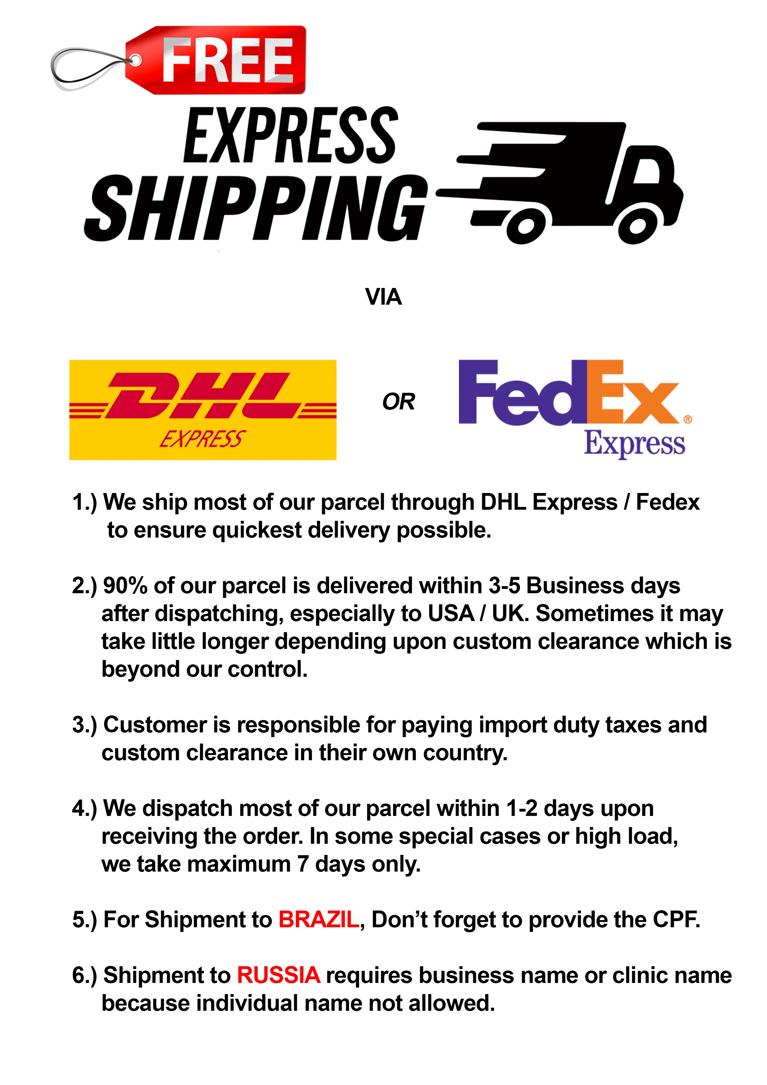 Q:What is the delivery time? Answer: We dispatch the product within 2-3 Business Days.