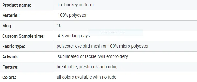 Product name | Customized Ice Hockey Uniform |