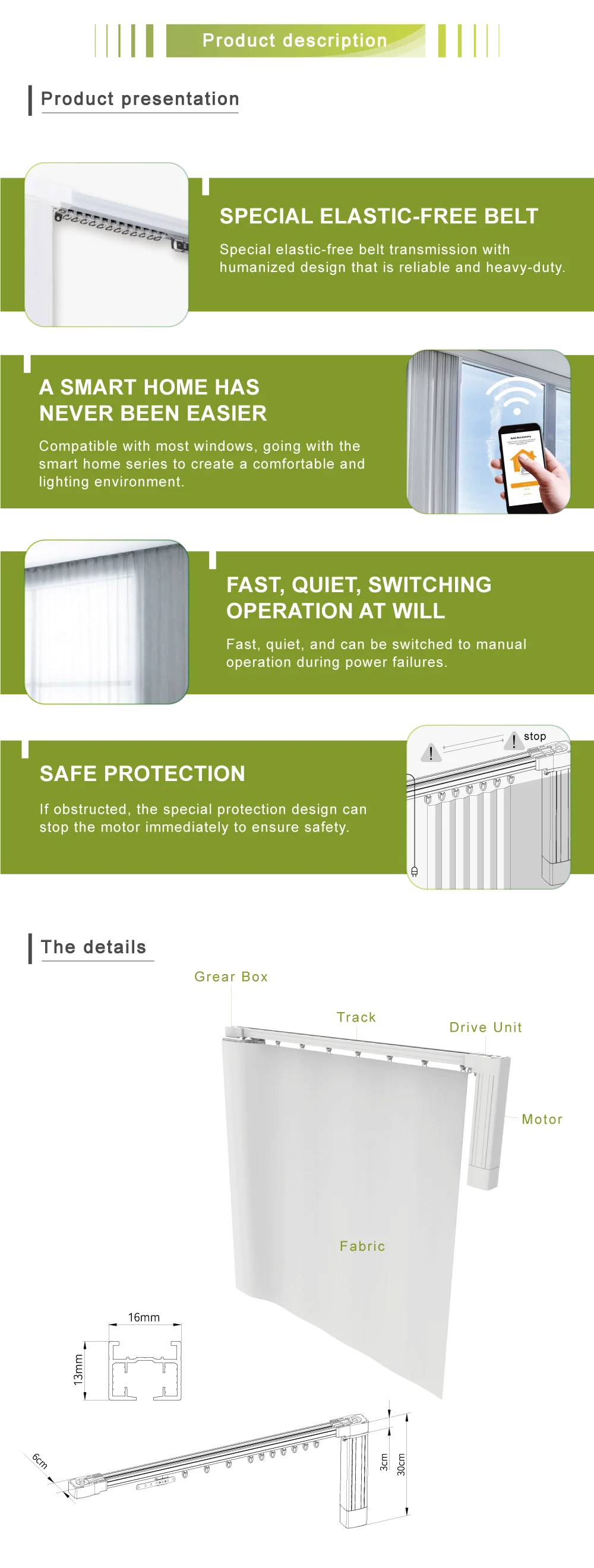 Energy efficiency | ● Low-power consumption DC motor | X High-power consumption AC motor | X High-power consumption AC motor |