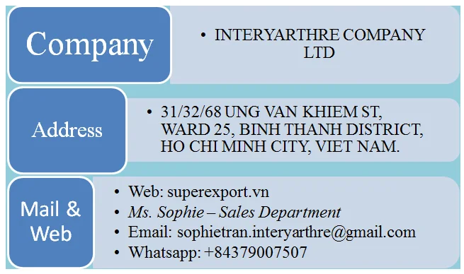 I'm Sophie working for INTERYARTHRE COMPANY LTD in Vietnam
