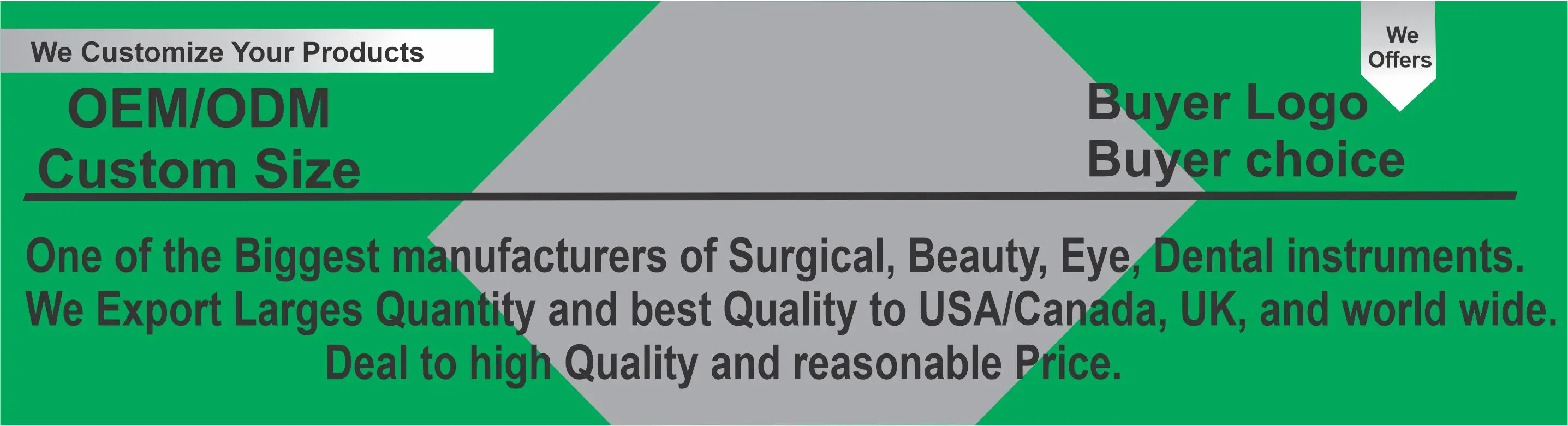 OUR SERVICES: | We are a factory manufacturing Surgical, Dental, Ophthalmic, Hair Extension Tools, Beauty, Surgical, Aquascaping Tools and Body Tools. We are providing customize Services . |