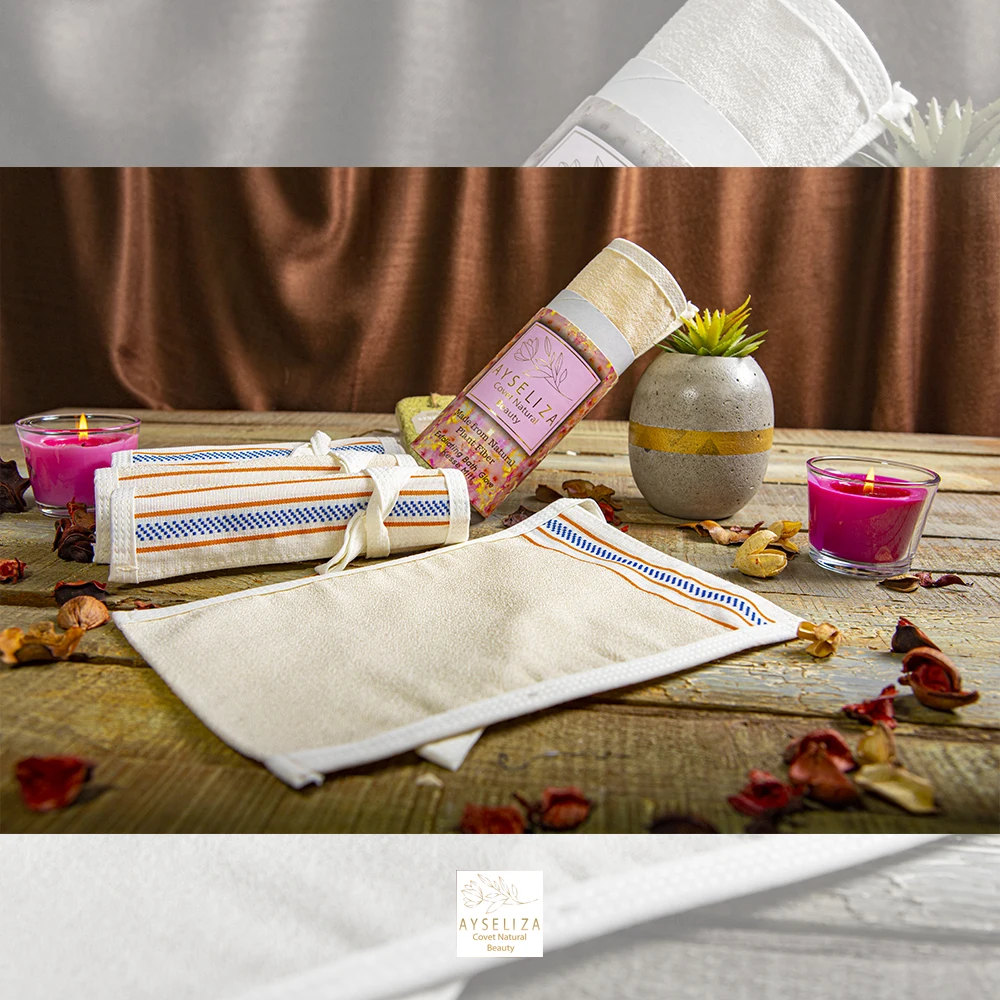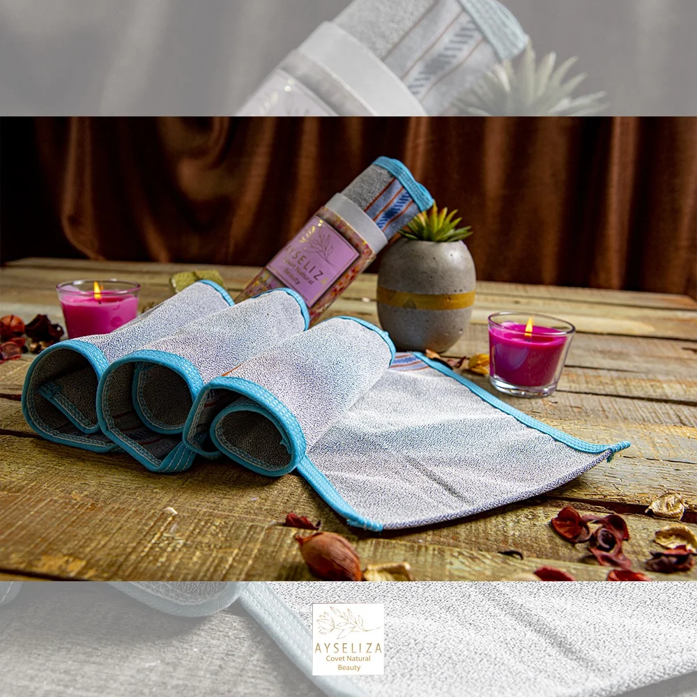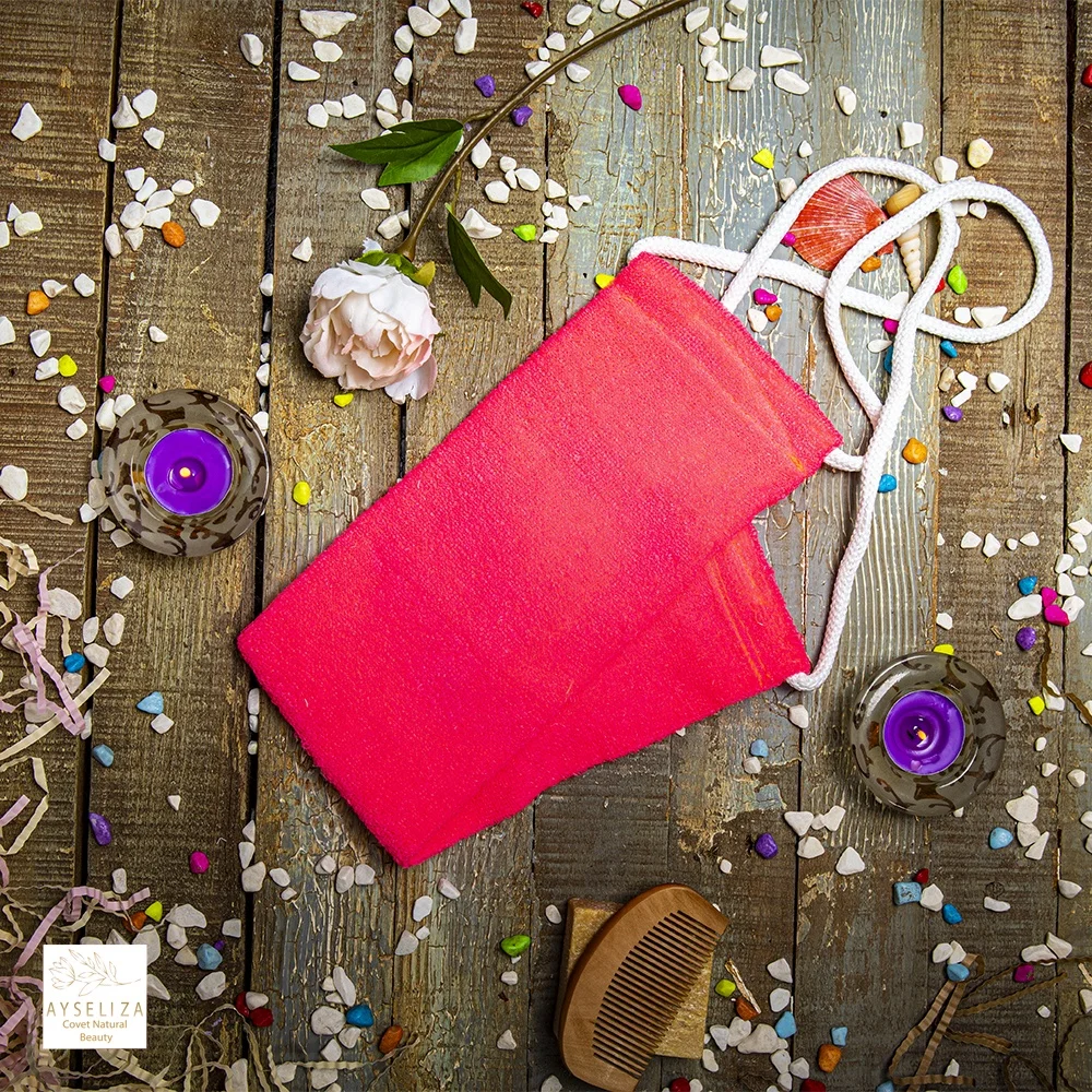 Weekly exfoliate with our bath glove to refresh the skin and throw away the fatigue. The use is as simple as gently scrubbing the skin with the fabric.