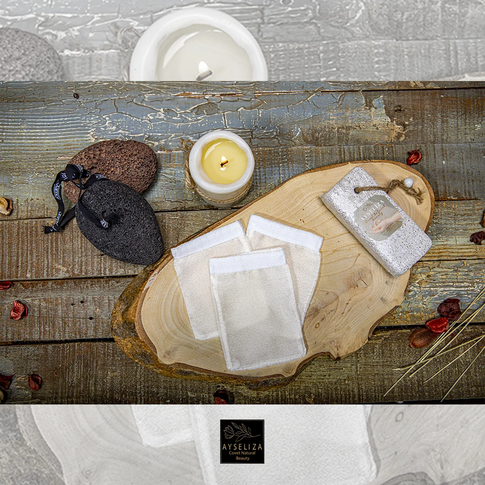 The Kese glove is traditionally used in hammam Spas as an ancient ritual to help promote soft, clean, and beautiful skin. Ayseliza Kesse Mitt.