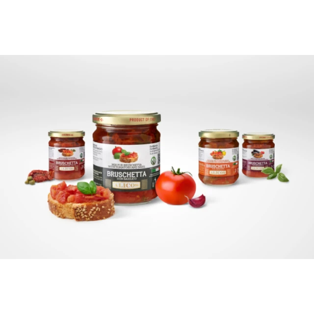 Made in Italy ready to eat jar mix for bruschetta with fresh tomato and sweet peppers for condiment