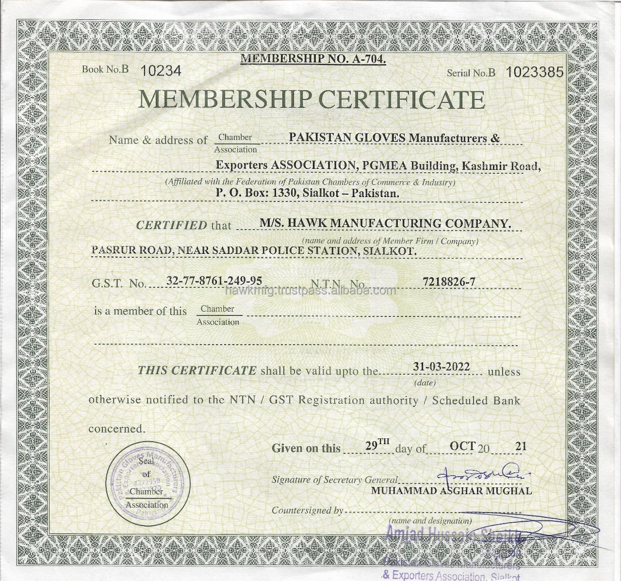 Address: | Doburji Araian, Pasroor Road, Sialkot, Pakistan. |