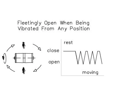 The VBS030600T acts like a Normally Closed switch which chatters open and closed as it is tilted or vibrated. Note that the VBS030600T is not guaranteed to be closed --- occasionally the sensing mechanism may remain open when at rest.