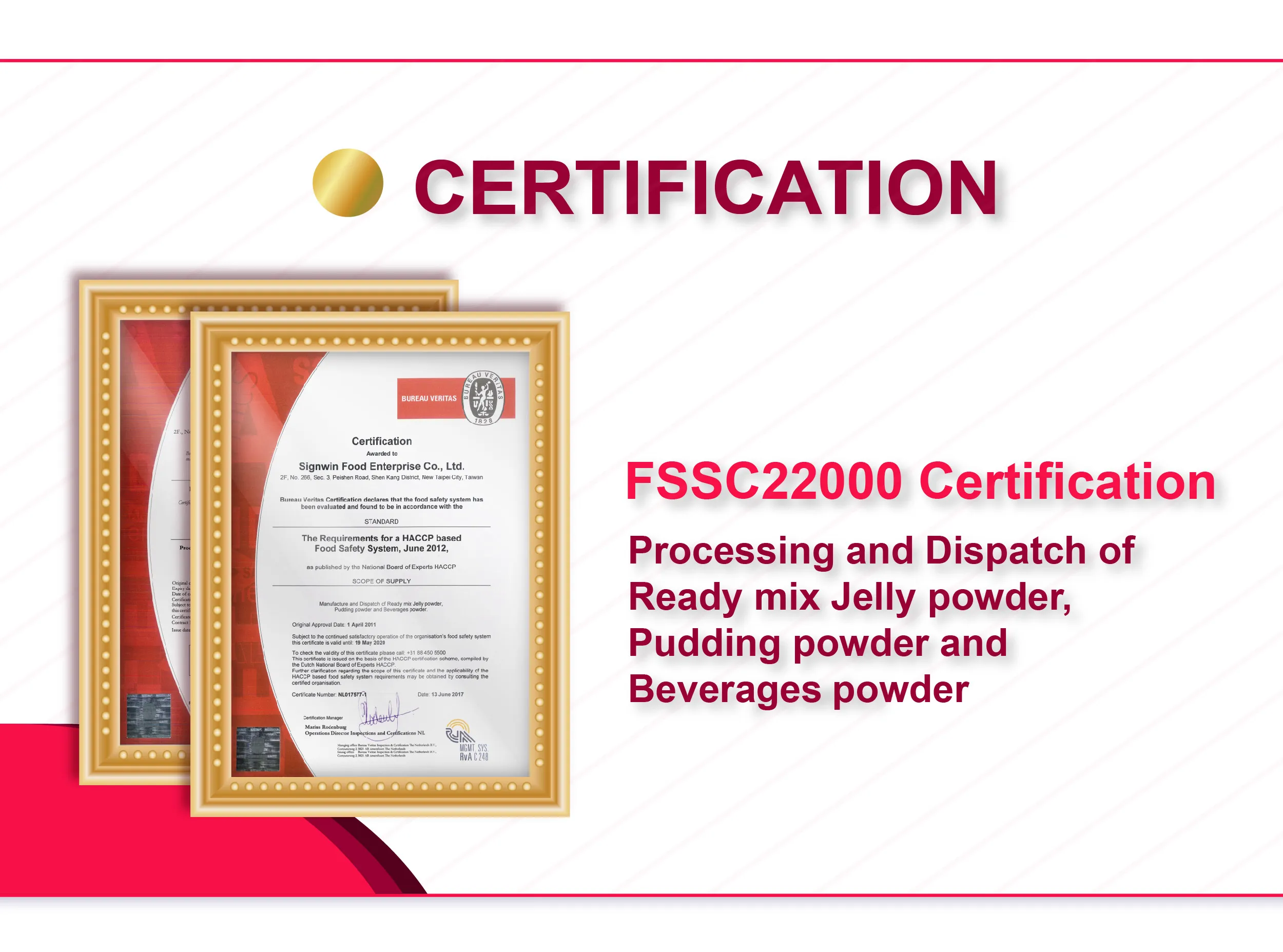 Certificates: | FSSC22000, HACCP, ISO22000 |