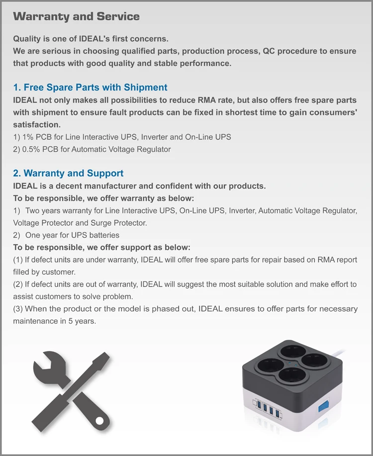 IDEAL POWER CO., LTD was founded in 1996 and committed to design and manufacture reliable and qualified full range of power products, including Uninterruptible Power Supply (UPS), Inverter, Automatic Voltage Regulator (AVR), Voltage Protector (VP) and Surge Protector (SP).