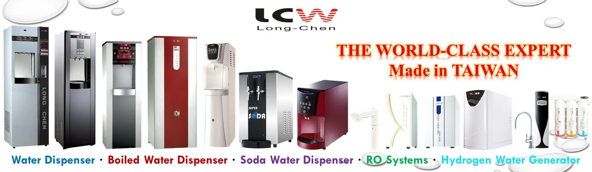 Developer and manufacturer of quality and global leader of reverse osmosis, water purifiers,electric water boilers with storage, electric water heaters with storage and many other drinking water relatd equipments in Taiwan. Founded in Taiwan in 1967 ,Long Chen’s quality has been recognized and awarded. We are a global leader in customized drinking water equipments and pioneered microcomputer-controlled steam sterilization water dispensers in 1997 that guranteed bacteria-free drinking for every day.
