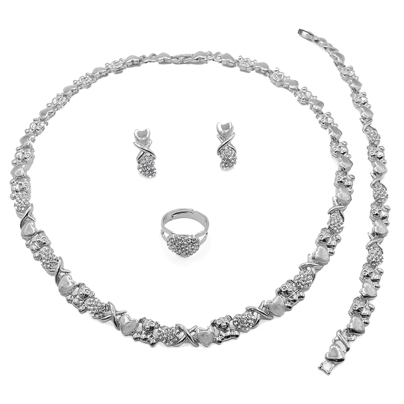 Xo New Design 18 K Gold plating American Diamond Jewelry Set Big Teddy Bear I Love You Hug and Kiss Necklace Set