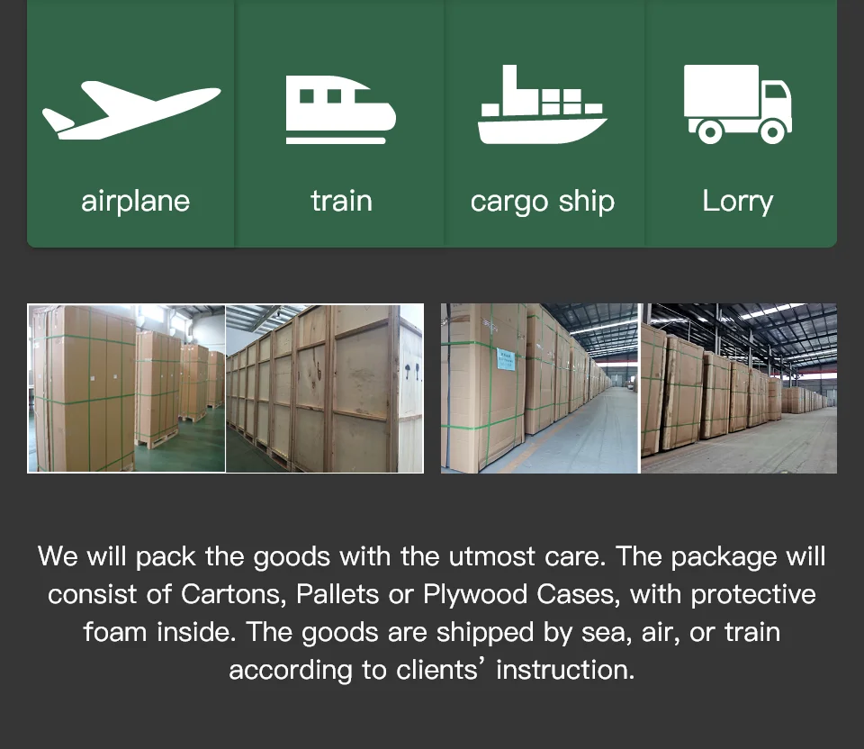 Packing | Equipped, Inner plastic film, 5 layers corrugated carton, wooden case. Protect product from damage |