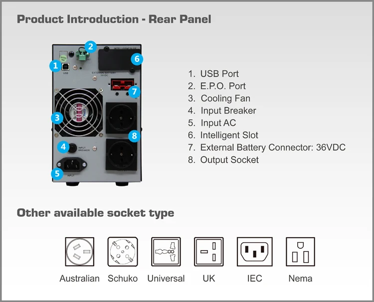 UPS system works by converting power from AC to DC and then back to AC. Supplying power with zero transfer time to the battery to ensure uninterrupted back-up power when AC power is abnormal, make it ideal for any sensitive devices.