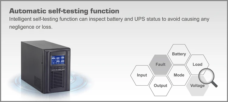 Intelligent self-testing function can inspect battery and UPS status to avoid causing any negligence or loss.