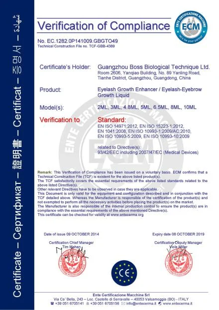 Boss Biological Technique Ltd has passed the certification of ISO22716, GMPC, CE, ROHS, MSDS, COA, and some important certifications.