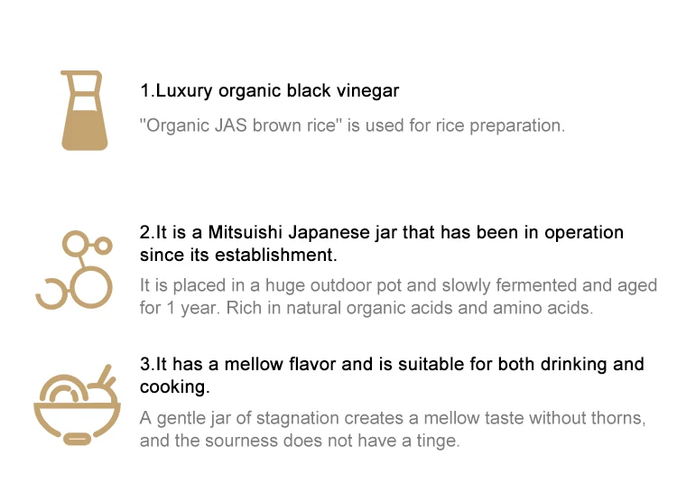 500ml | 20 L for commercial use【Build-to-order manufacturing】 | 1 ton for commercial use【Build-to-order manufacturing】 | Aya's Black Vinegar Series Aya's Organic Black Rice Vinegar 300ml | ||||