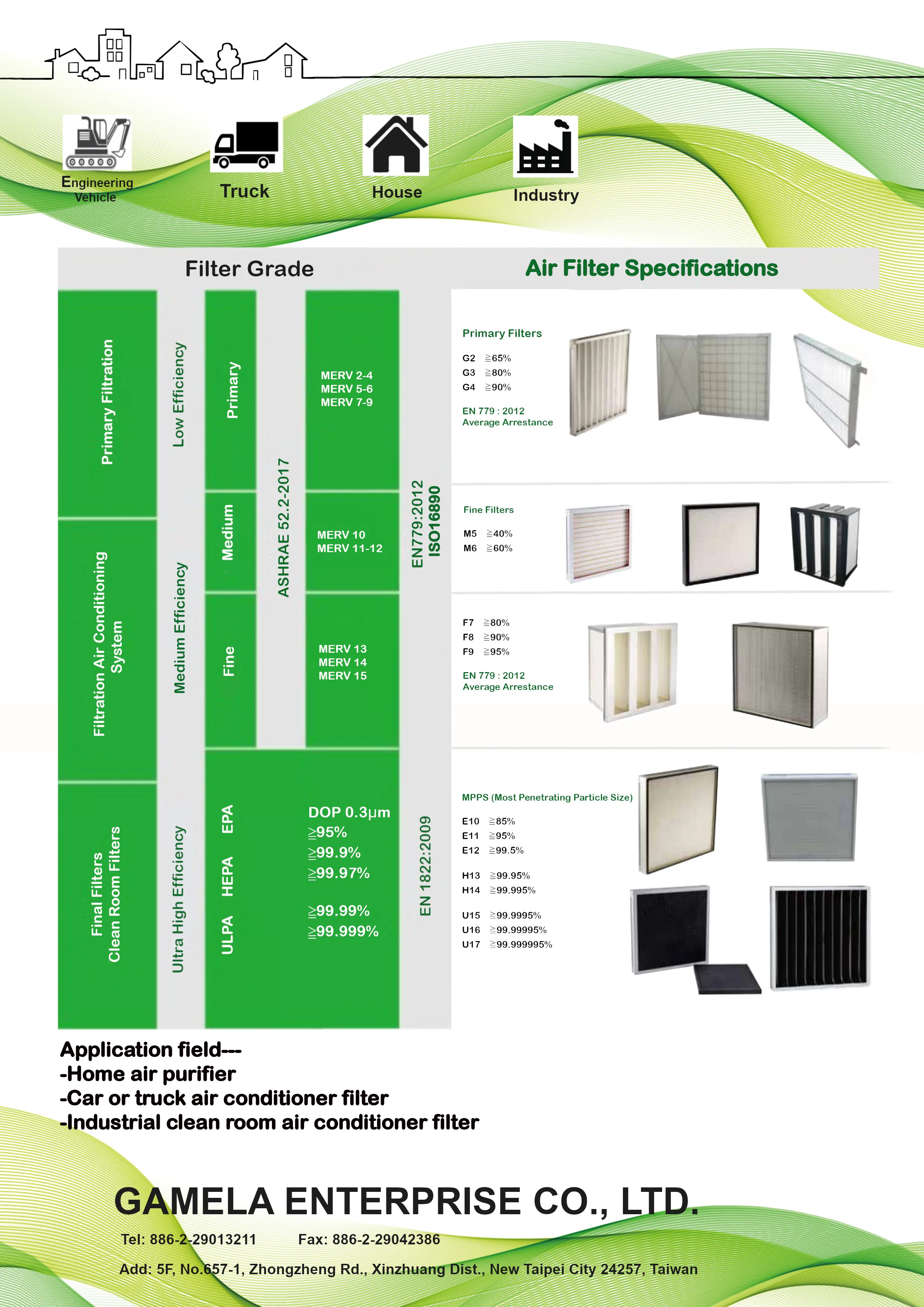 Glass Fiber+Paper Frame+ Actrivated Carbon Foam