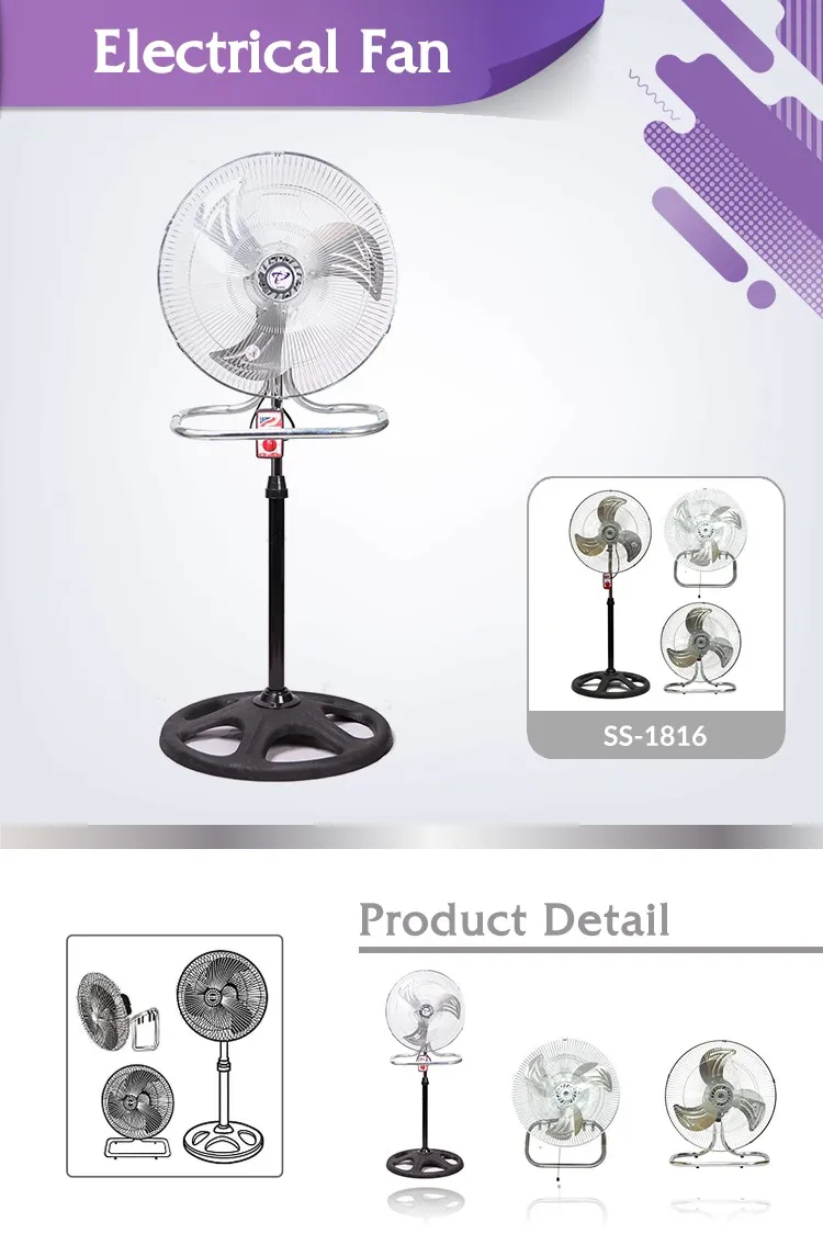 Taiwan best quality good price SS-1816 3in1 metal standing electrical fan