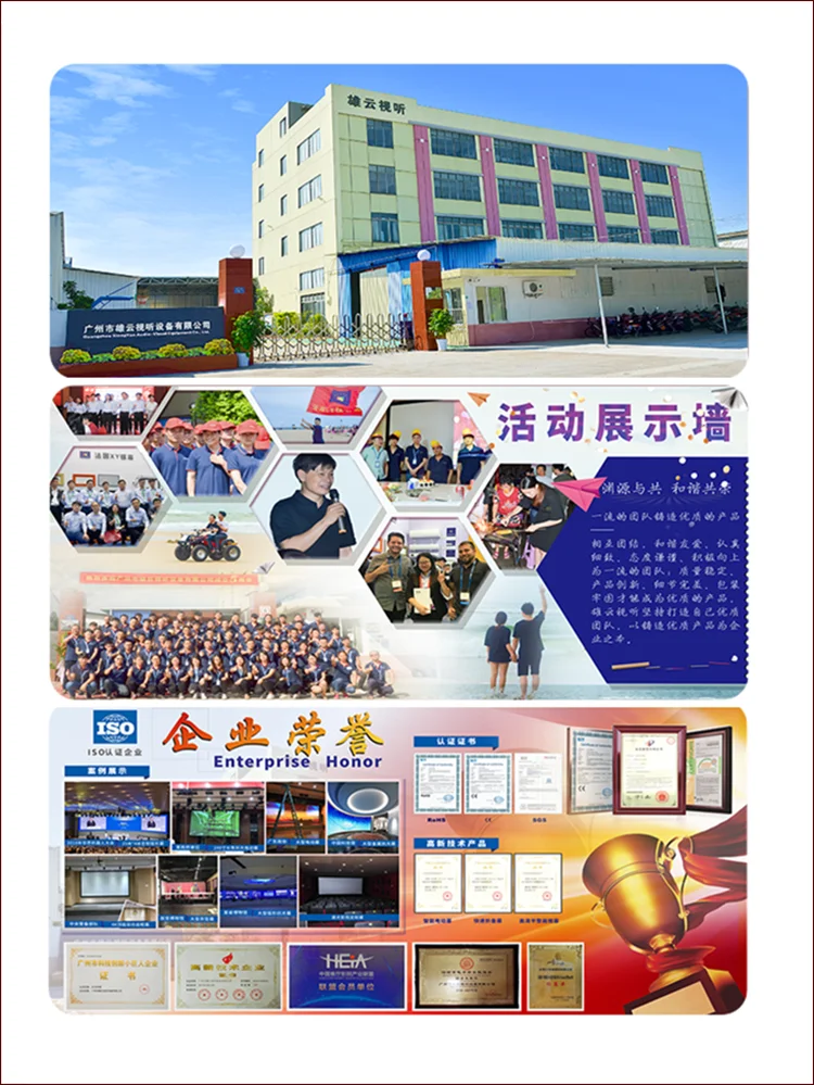 Guangzhou Xiong-Yun Audio-Visual Equipment Co., Ltd. is a professional projection screen manufacturer since 2013, and mainly produce Motorized projector screen, Fixed frame projector screen, Fold frame screen, Portable projector screen. Products are sold to USA, Germany, France, UK, Japan, Korea, Australia, New Zealand, Singapore, Philippines, Indonesia, etc over 50 countries.