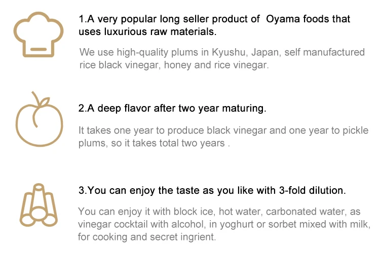 500ml(In a fancy box) | 720ml【order production】 | 1 ton for commercial use【order production】 | Aya's black vinegar series plum 300ml | ||||