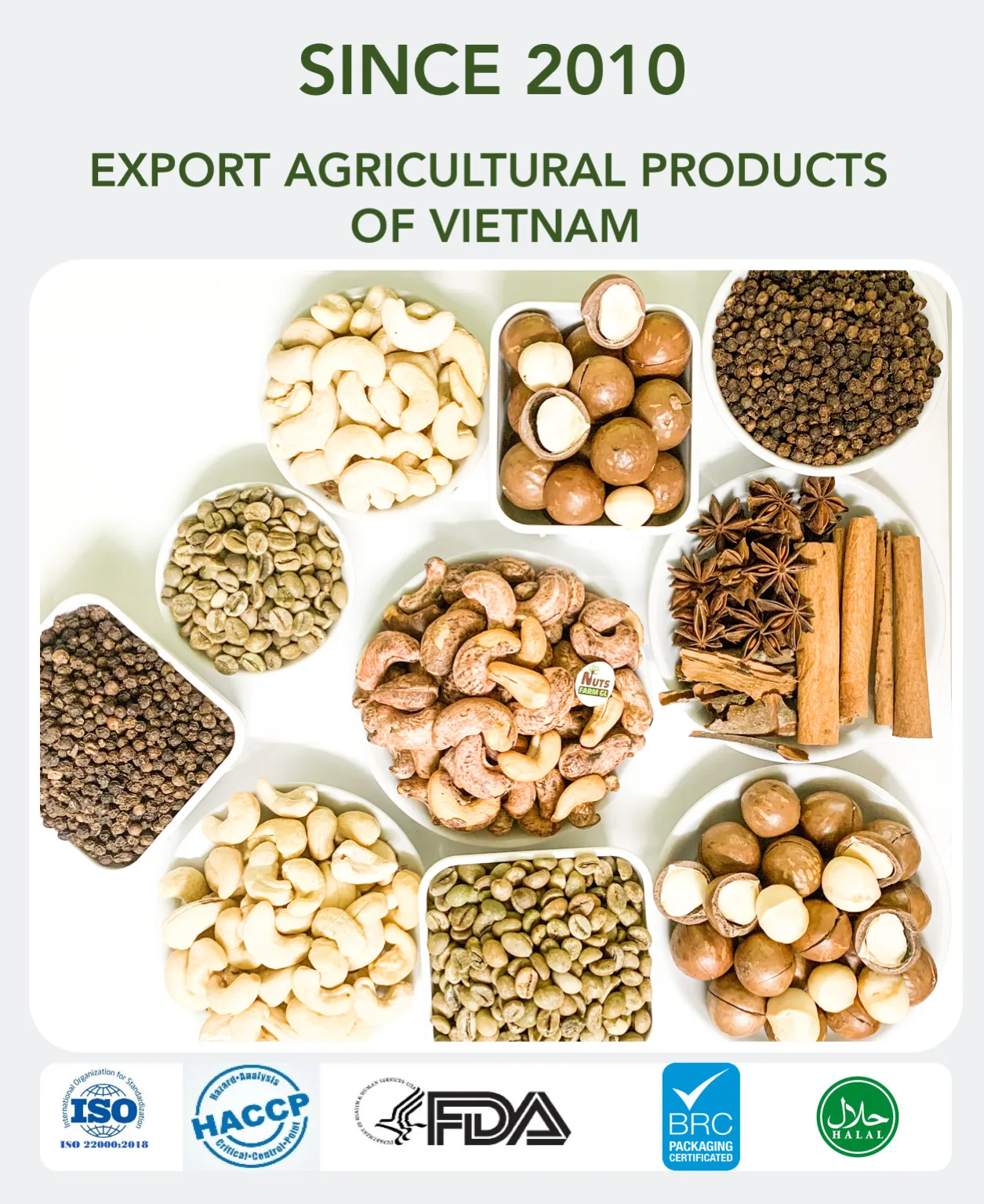 I am Mrs Linh from DH-FOOD VIET NAM CO., LTD Our company have exported VIETNAM nuts & spice since 2010 untill now. Ours products have already showed on over the world such as: U.S,A, CANADA, U.A.E, RUSSIA, ISRAEL, TURKEY , CHINA, INDONESIA….