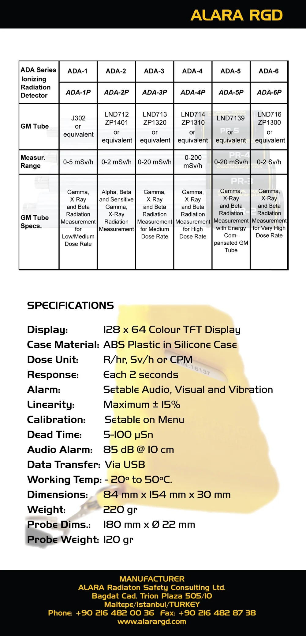 All detector types come with LND/USA or Centronix/UK Geiger Muller Tubes (Except ADA-1 and ADA-1P).