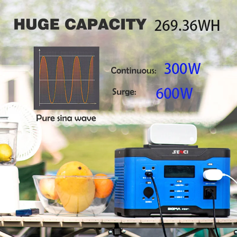 Large Capacity SIGMA MINI 300w is an entry choice for home use, for campers, adopts pure sine AC sine wave, can protect sensitive electronic equipments, such as: CPAP, laptop computers, camera, car refrigerator, rice cooker, coffee maker, drone, power supply for various of AC, DC power supply equipments. | ||||||||