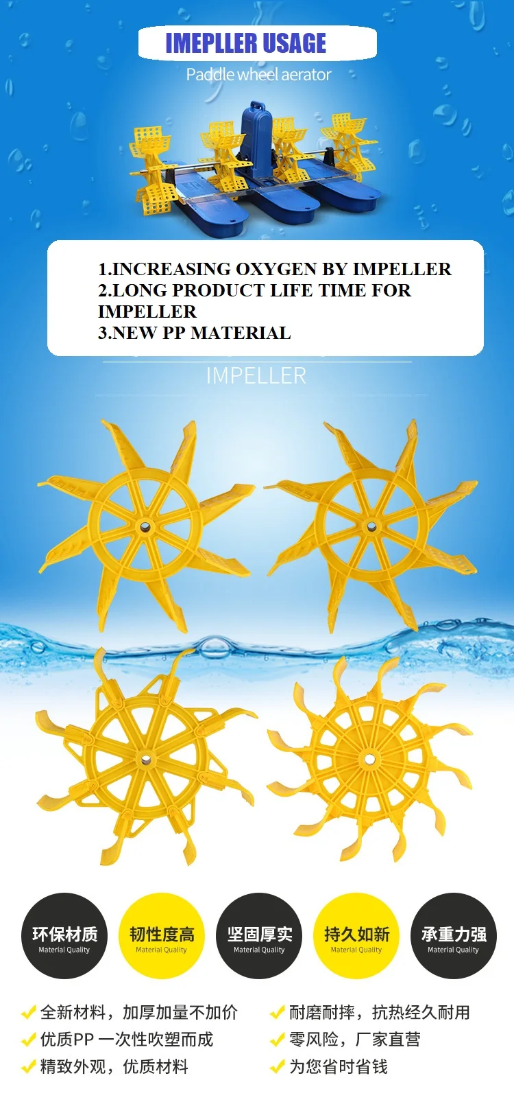 8pcs-vane paddle design make more frequent splashes and better DO supply.