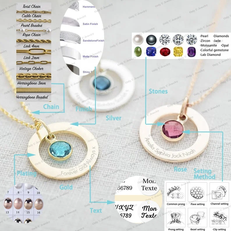 Product Name | Ouj Custom Name Necklace 18K Gold Plated Jewelry I Love You Mama Circle Lucky Charms Birthstone Brushed Letter Pendant Necklace |