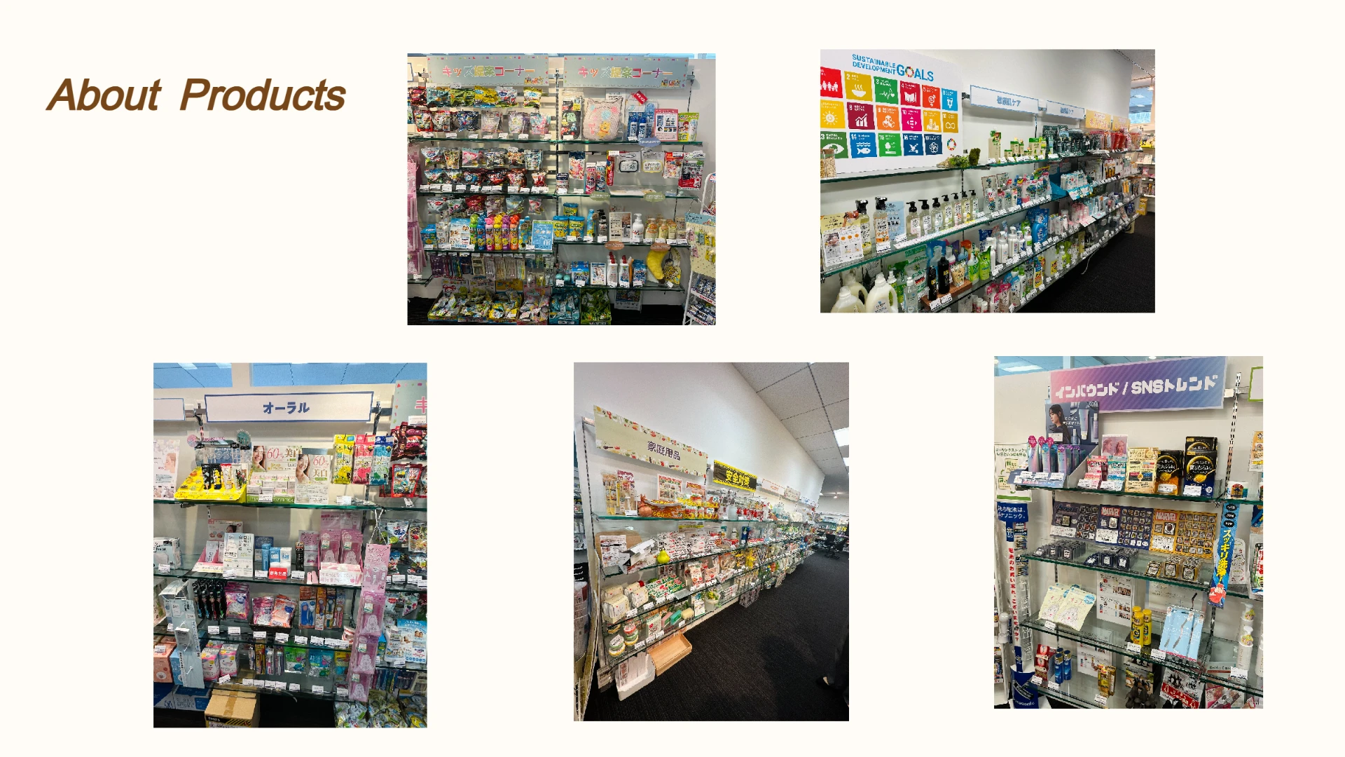 We handle a huge variety of Japanese products, such as cosmetics, skincare products, makeup, hair care products, beauty aids, electric appliances, baby products, home essentials, food and drinks, snacks, Japanese alcoholic beverages, and pharmaceutical products, etc.