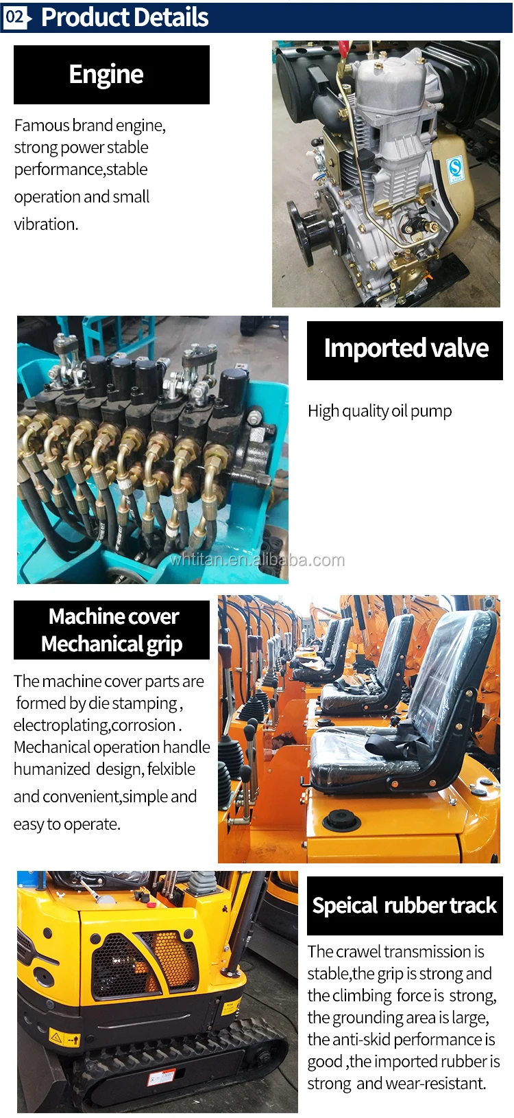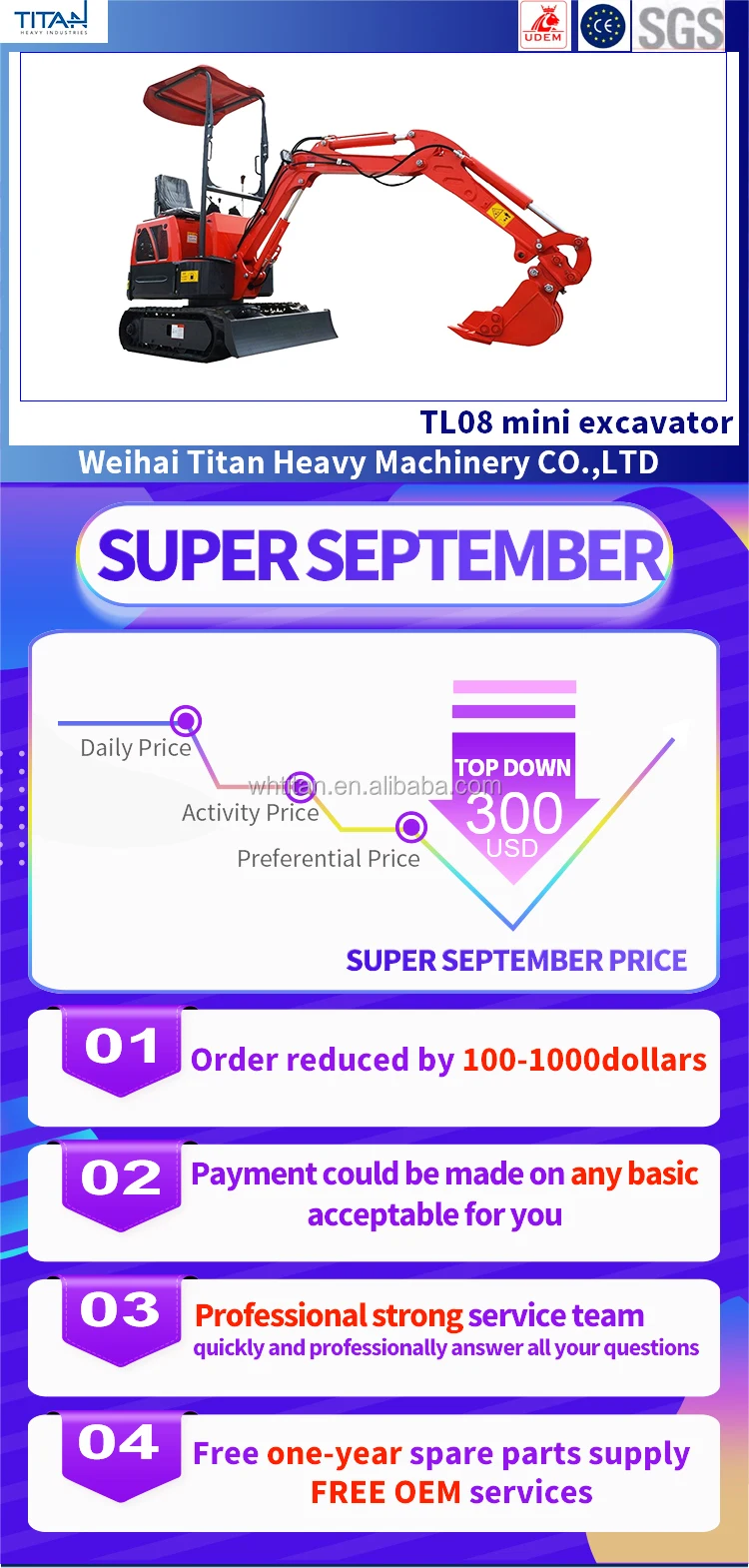 1.Titan 0.8ton excavator owns beautiful appearance, high configuration, superior performance, low fuel consumption, wide operating range.