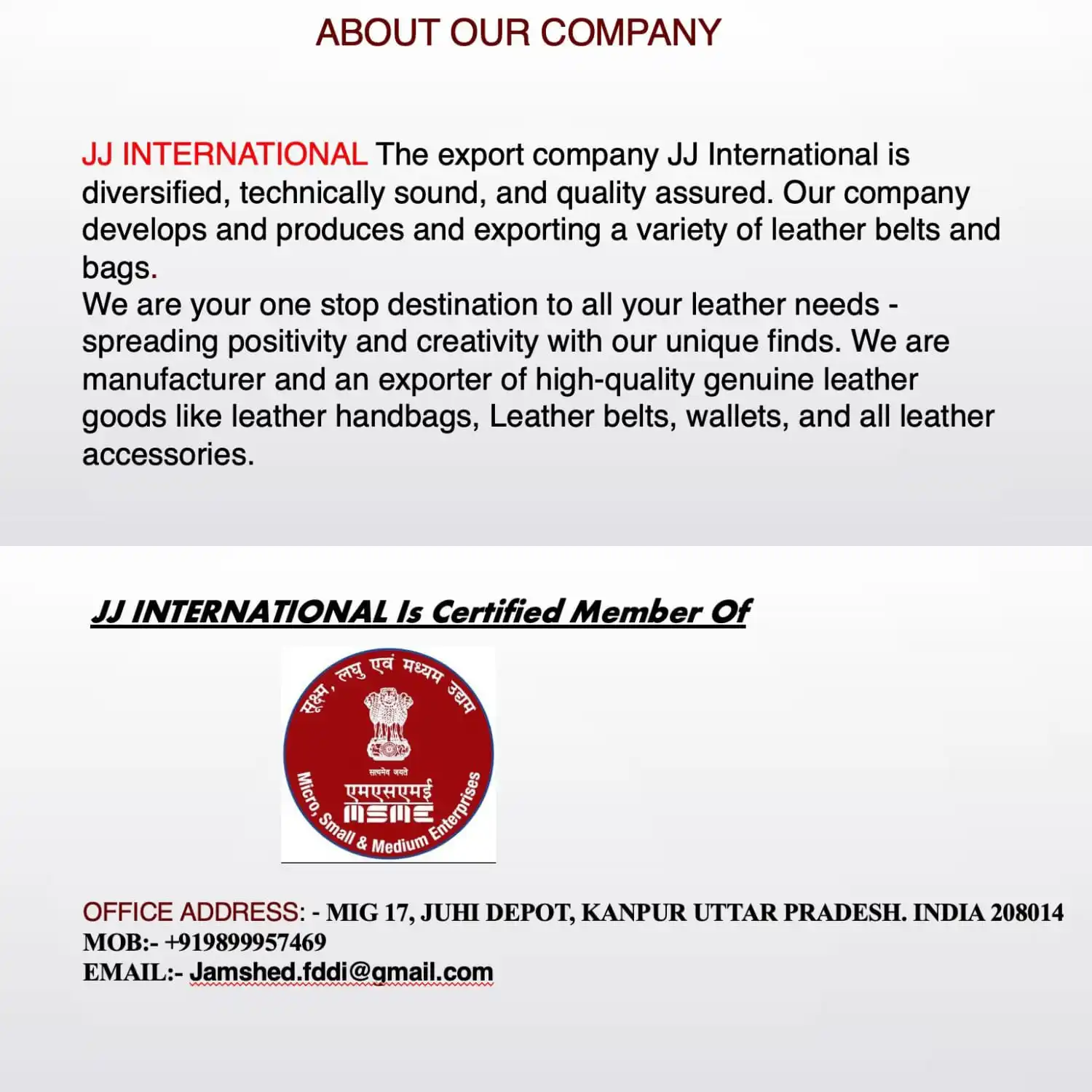JJ International is diversified, technically sound, and quality assured. We