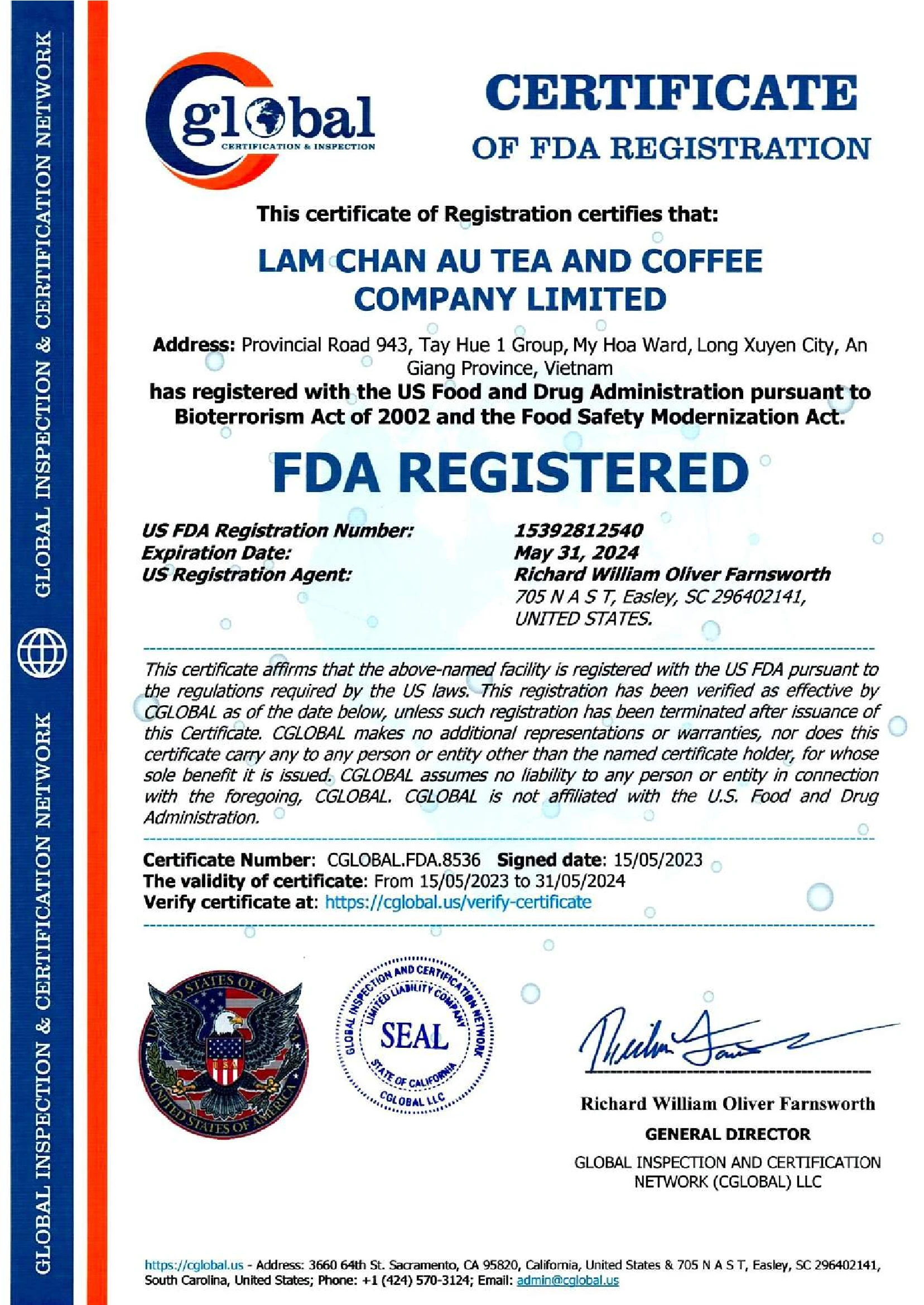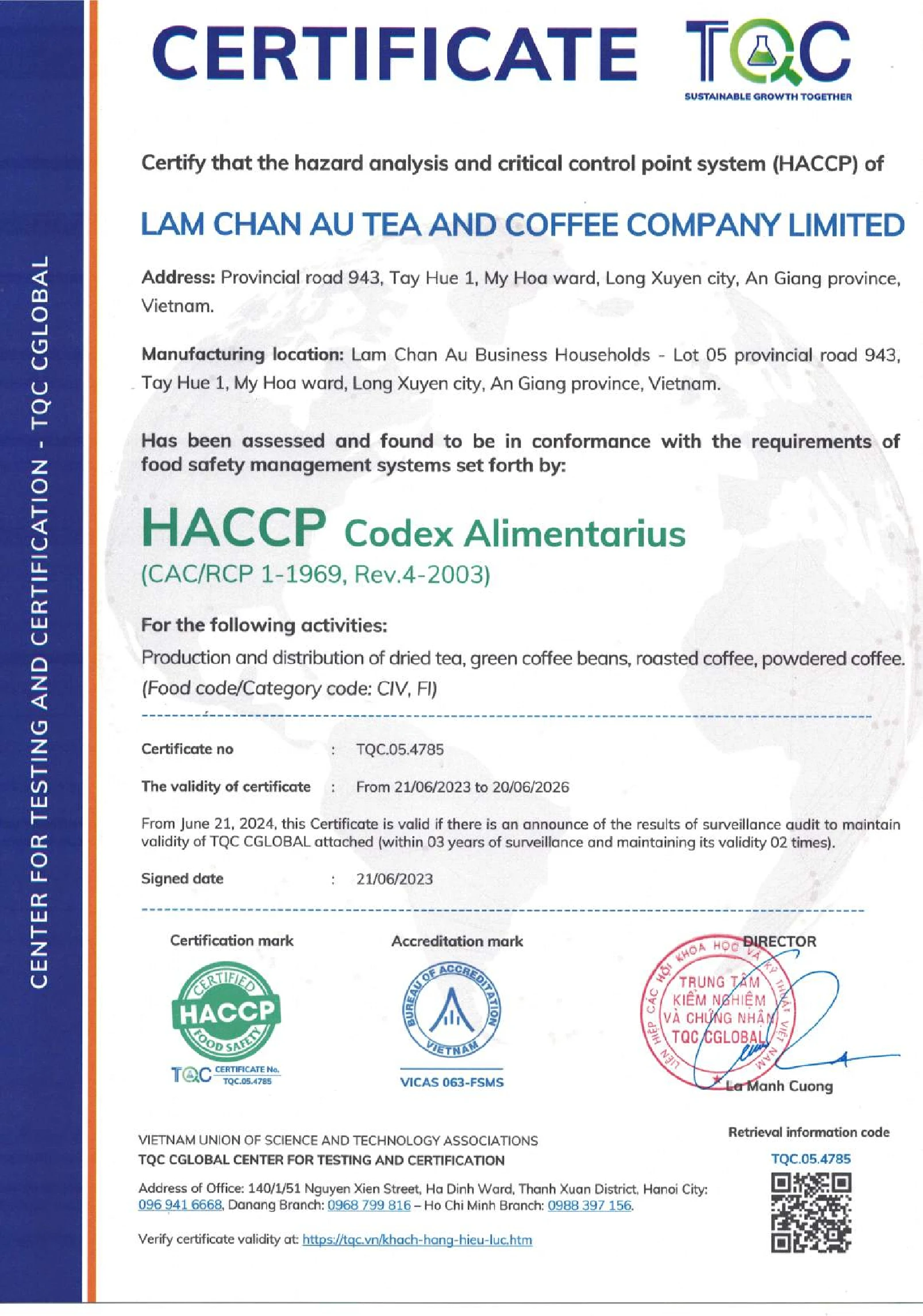Certification | ISO 22000, HACCP, GACC |