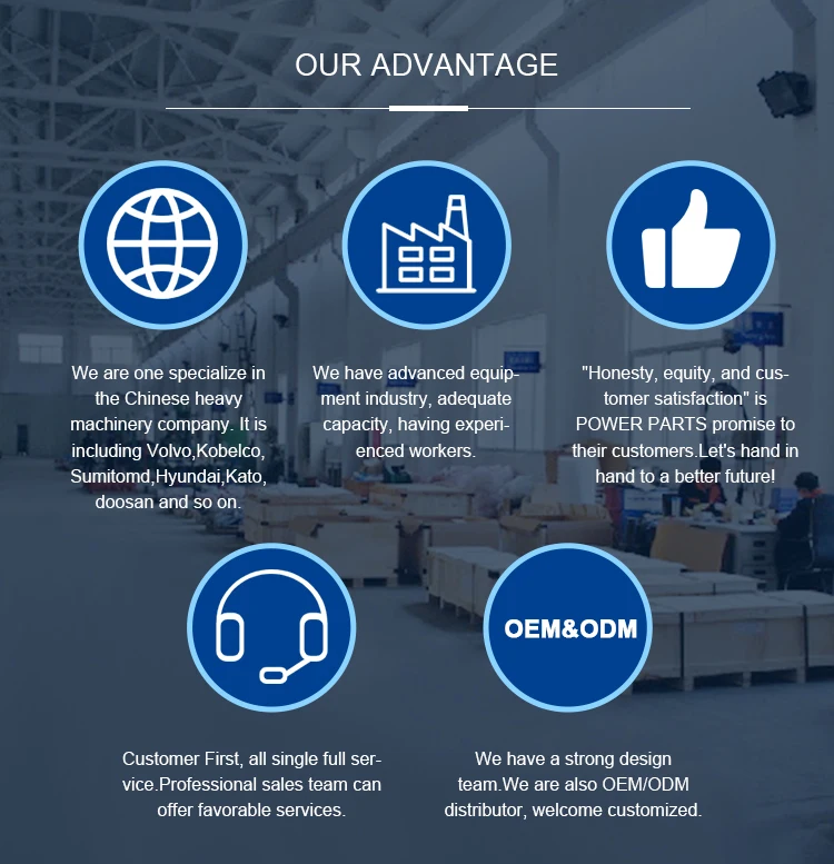 Hydraulic Parts | Hyd pump,gear pump,regulator swing motor,travel motor,main control valve, panetary carrier assy,sun gear, panetary gear, cyl block&valve plater, piston shoe,........ | |||||
