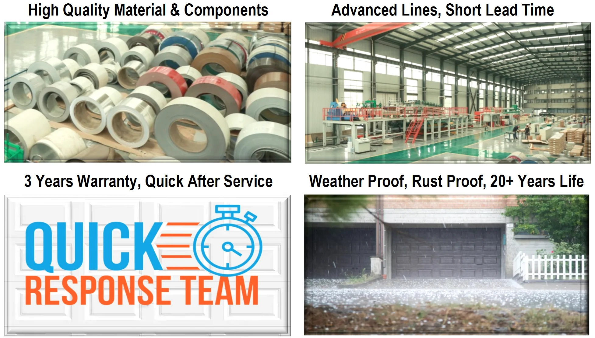 The company specializes in the production of various aluminum and steel rolling doors, garage doors, industrial doors, etc. The products have been exported to the United States, Canada, the Czech Republic, New Zealand, Jamaica, South Korea and other countries. It is the rolling door supplier of Lowe's, the second largest building material supermarket in the United States.